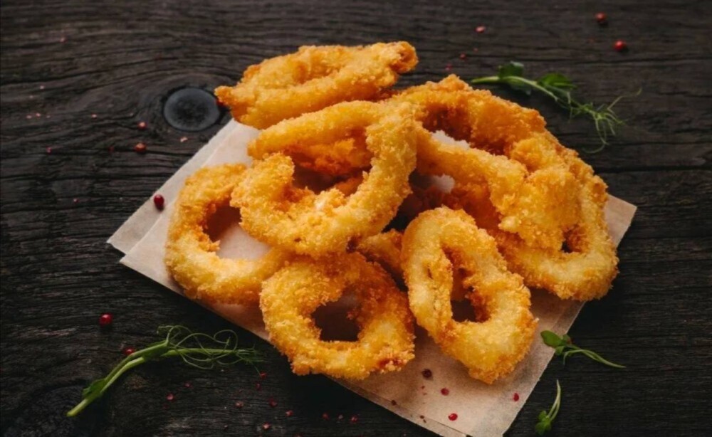 Кольца кальмара в фирменной панировке с кунжутным соусом