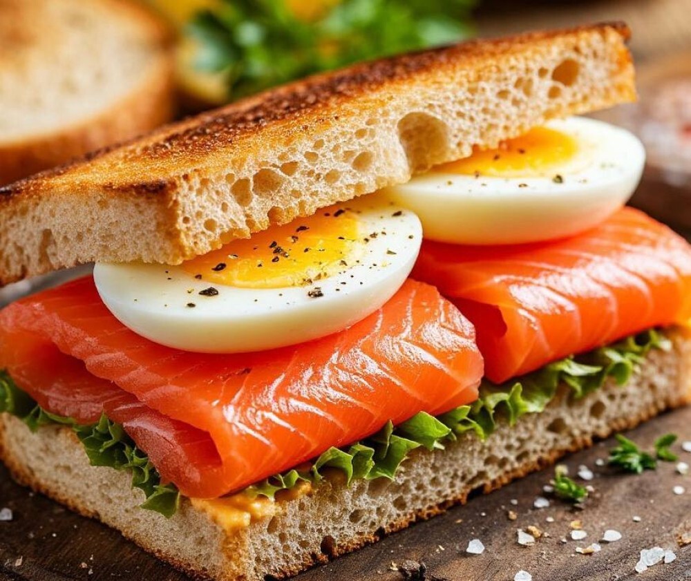 Сэндвич со слабосоленой семгой и яйцом
