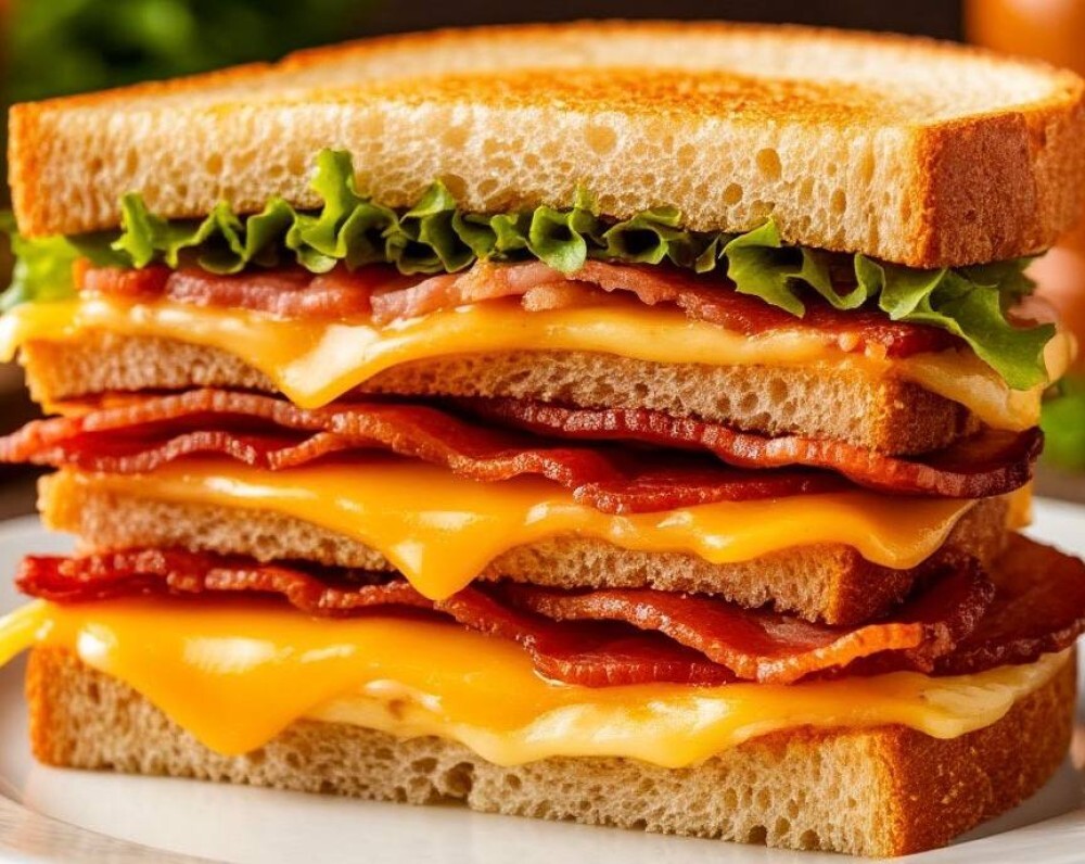 Сэндвич с двойным сыром и беконом
