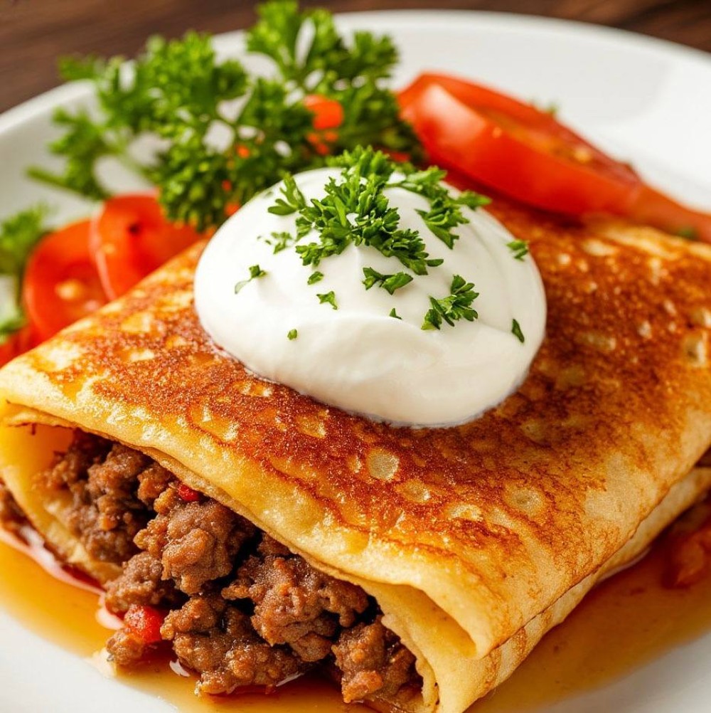Блинчики с мясом и сметаной
